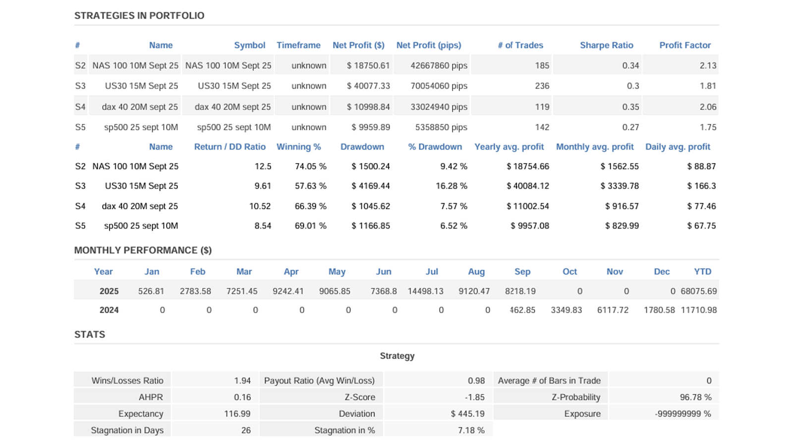 Key performance snapshots from QuantAnalyzer.
